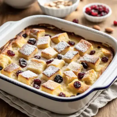 La versión más tradicional del pudding de pan: tierno con bordes ligeramente caramelizados y crujientes. Sencillo y con sabor hogareño, apto para todas las edades y perfecto como postre.