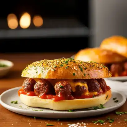 Mini sliders rellenos de jugosas albóndigas, con el aroma intenso del ajo y el queso por fuera; son irresistibles y perfectos para reuniones y fiestas.