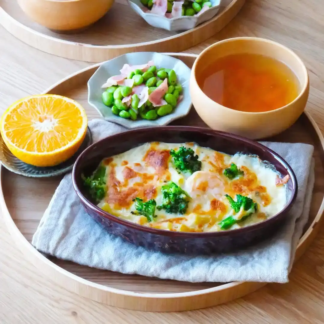 この献立は、冷凍食材を上手に活用することで、忙しい日でも30分程度で完成します。グラタンはシーフードミックスの旨味がたっぷり。副菜のえだまめベーコンとコンソメスープで、栄養バランスも良好です。子供から大人まで楽しめる味付けで、家族みんなで食卓を囲むのにぴったりです。外食と比べて材料費を抑えられるため、節約したい方にもおすすめのメニューです。