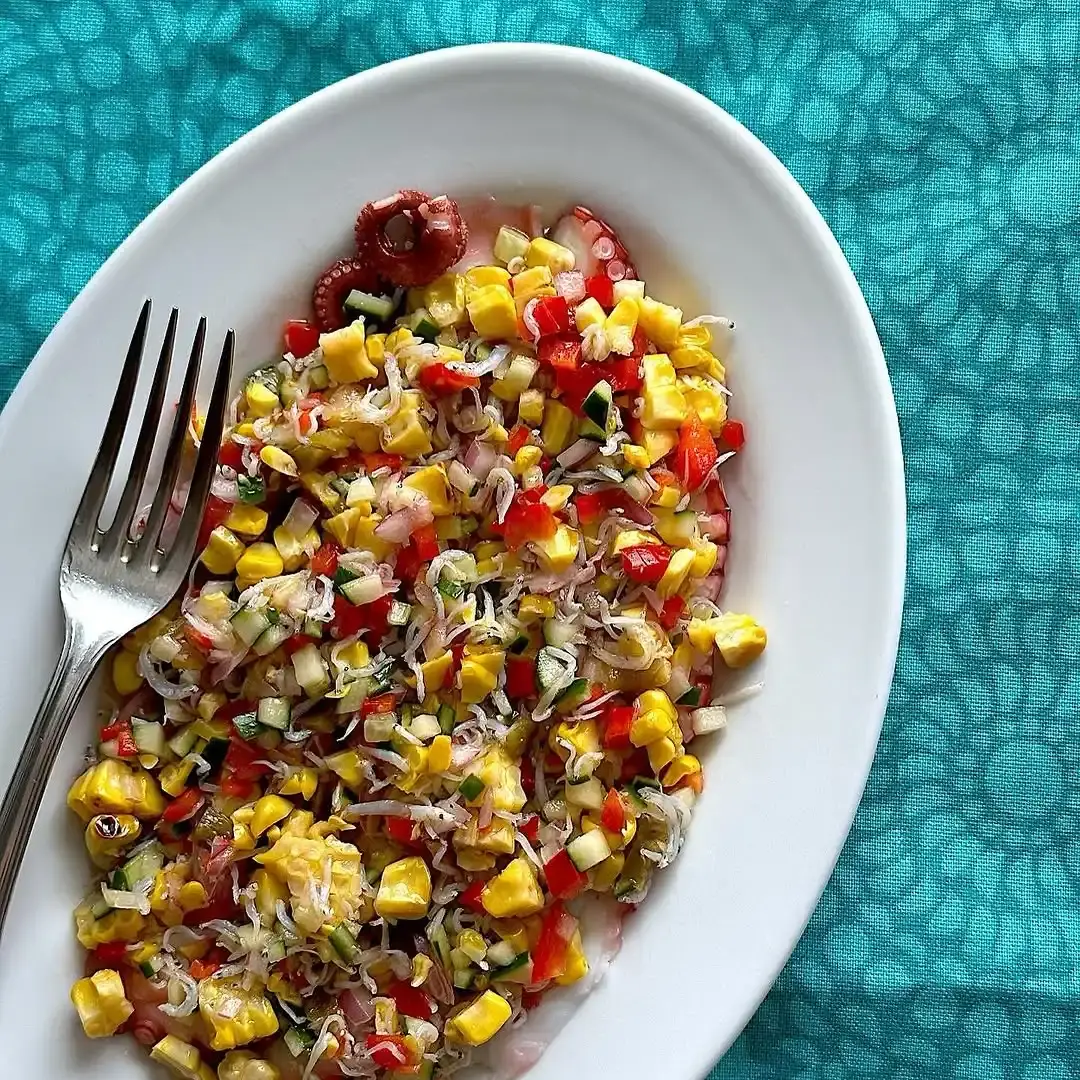 蛸のカルパッチョ トウモロコシとしらすのサルサ