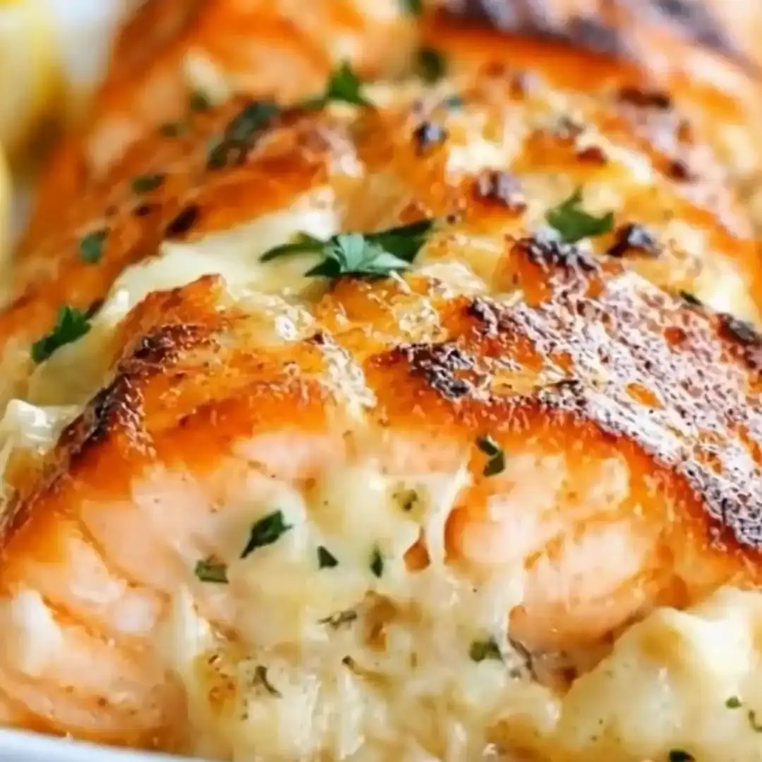 各ポケットに詰め物をスプーンで入れ、サーモンを優しく閉じます。詰め物をした切り身を耐熱皿に並べます。
