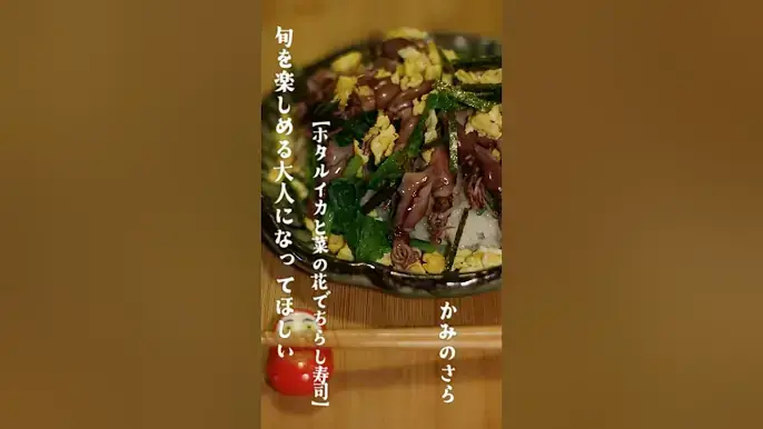 旬のホタルイカと菜の花の組み合わせは、春の訪れを感じさせてくれます。本格的に見えますが、工程はシンプルで、忙しい日でも手軽に作れる一品です。卒業祝いなど、特別な日の食卓にもぴったりの彩り豊かなちらし寿司です。
