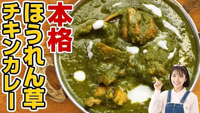 器に盛り付ければ、ビタミンたっぷりのほうれん草チキンカレーの完成です。