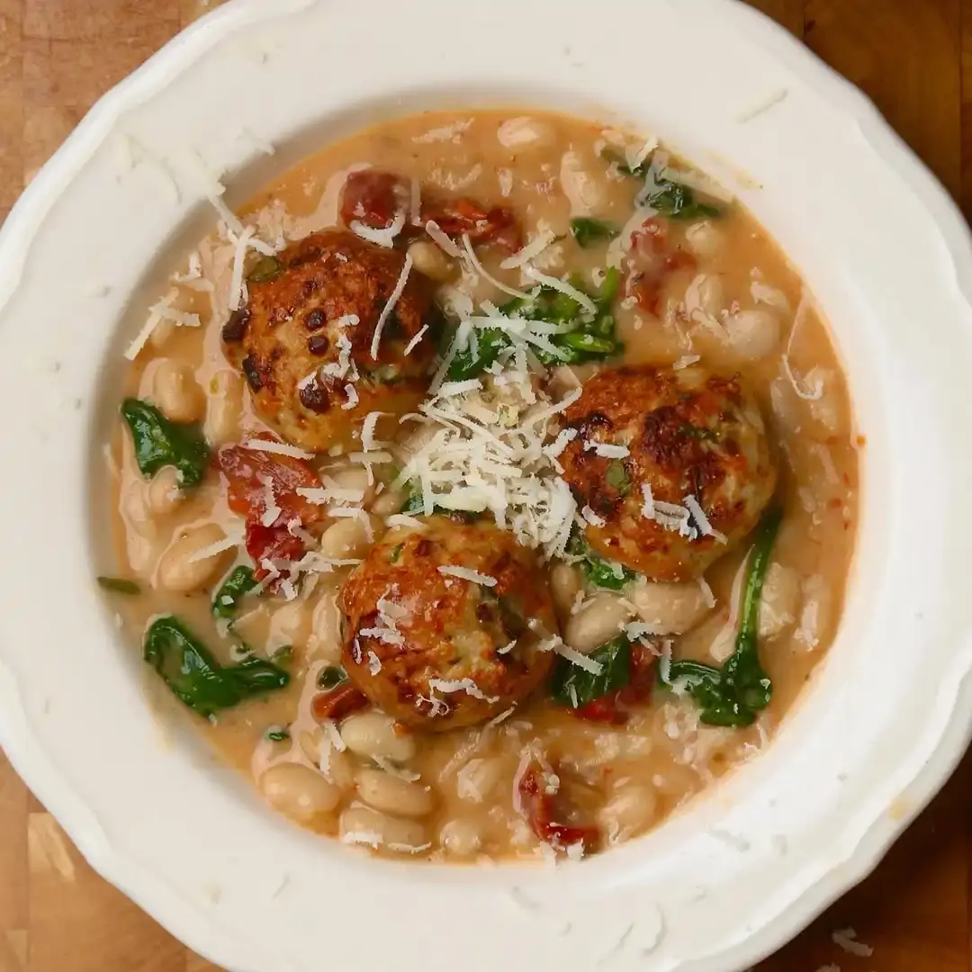 このレシピは、高タンパク質で満腹感があり、忙しい平日の夕食に最適です。肉団子は、豆のソースを作る鍋で先に焼くことで、洗い物が少ないワンポット料理にすることも可能です。ドライトマトはポリフェノールが豊富で、健康にも良いです。ほうれん草にはビタミンが豊富に含まれており、免疫力向上に役立ち、鉄分も豊富です。トーストしたサワードウブレッドにオリーブオイルをかけて添えると、この料理をさらに美味しく楽しめます。