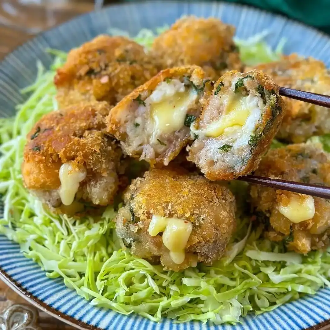 チーズがはみ出さないようにしっかりと包むと、揚げ焼き中に溶け出しにくくなります。📌