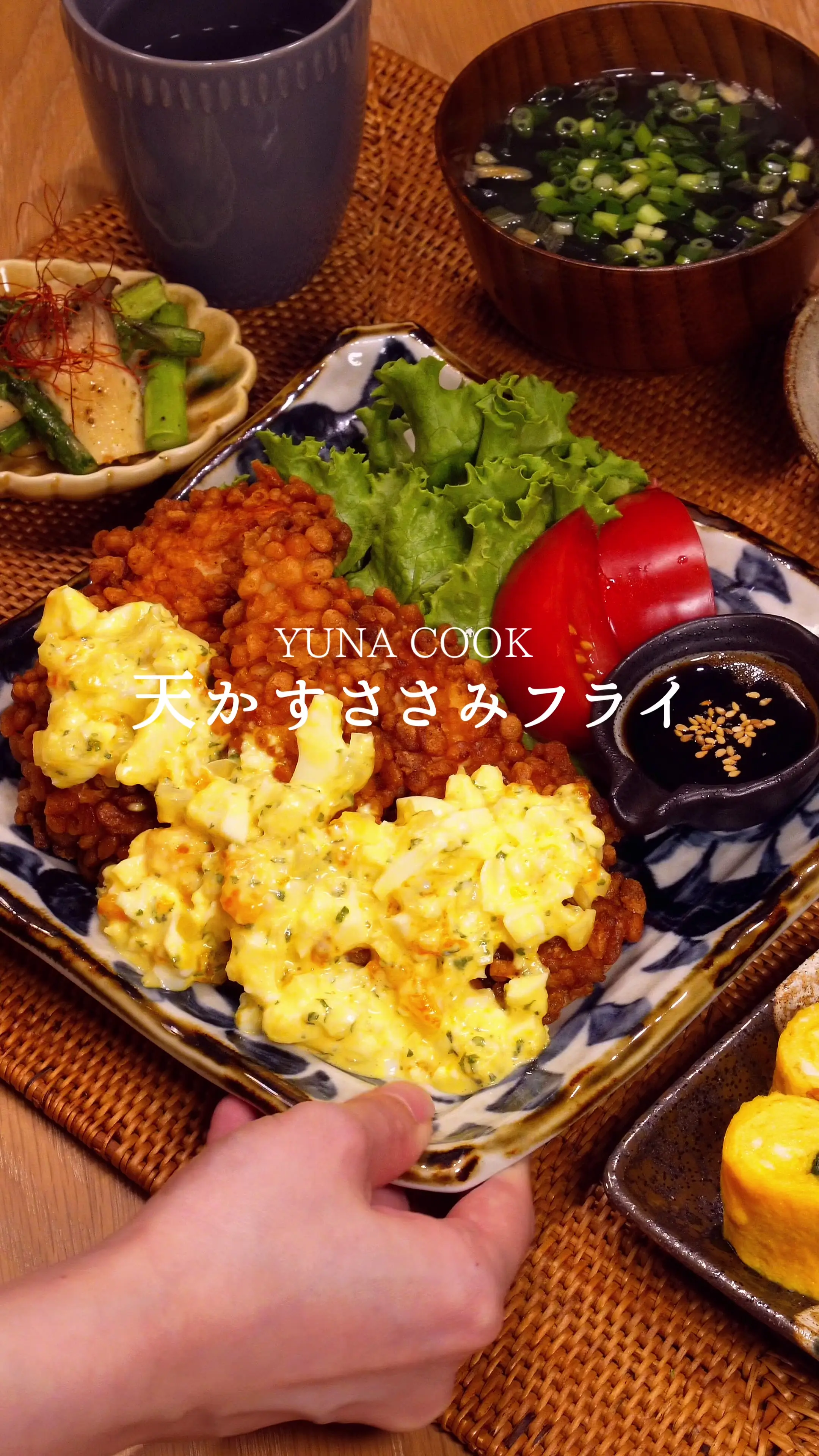 タルタルソースは前日に作っておくと、味がなじんでより美味しくなります。余った天かすささみフライは冷凍保存が可能で、お弁当のおかずにもぴったりです。鶏ささみの代わりに、鶏むね肉を使っても美味しく作れます。その際は、火が通りやすいように薄めに切ってください。ご飯、味噌汁、副菜を添えれば、バランスの取れた定食になります。