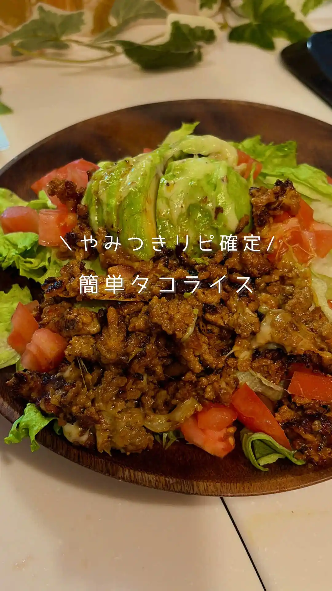 レタスの上に手順3で作ったひき肉、角切りトマト、薄切りアボカド、とろけるチーズを乗せて完成です。