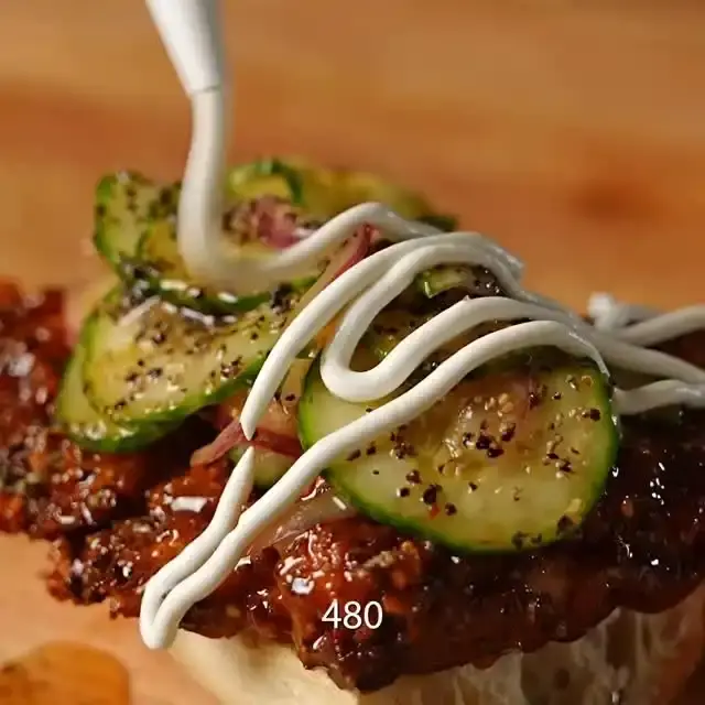 バゲットを半分に切り、切り口にマヨネーズを塗ります。調理したレモンペッパーチキン、きゅうり、赤玉ねぎを挟み、お好みでさらに黒こしょうを振りかけたら完成です。