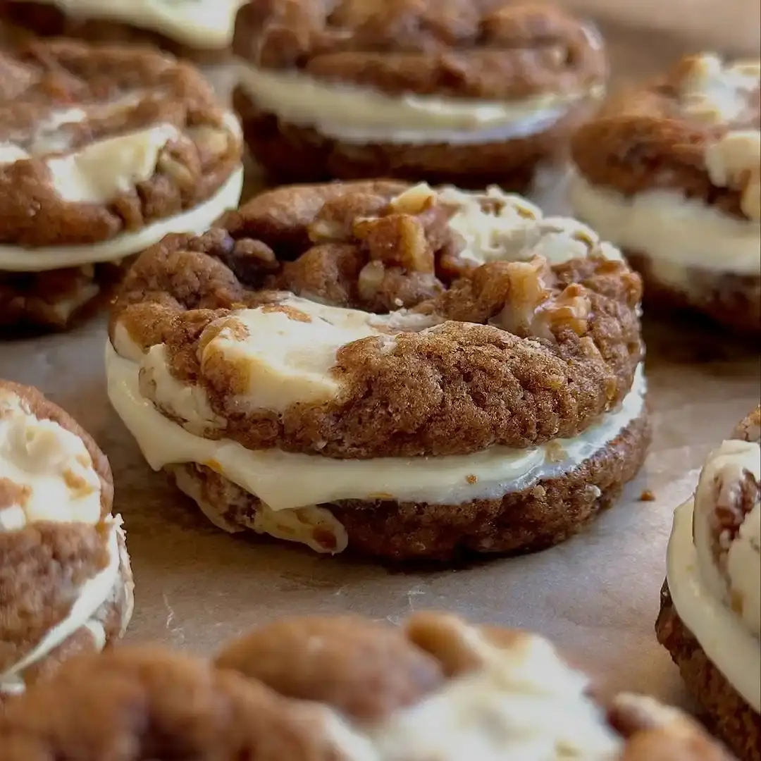 焦がしバターは、無塩バターを中火で加熱し、黄金色になりナッツのような香りがするまで焦がして作ります。焦げ付かないように注意し、室温まで冷ましてから使用してください。生地を冷蔵庫で最低2時間冷やすことで、クッキーの形が崩れにくくなり、風味がより深まります。この工程は省略しないでください。クッキーをオーブンから出してすぐに天板を叩き、クッキーカッターで形を整えることで、完璧な丸い形と良い食感に仕上がります。焼きたてのクッキーに少量の海塩を振ると、甘さと塩味のバランスが絶妙なアクセントになります。フィリングのクリームチーズは、使用前に室温に戻しておくと、ダマにならず滑らかに混ぜることができます。