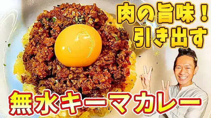 ひき肉に塩ではなく砂糖を使用することで、水分を保持しグレービーソースのようななめらかな仕上がりになります。玉ねぎとセロリに事前に塩を振って水分を出すことで、調理時間を短縮し、焦げ付きを防ぎ、無水調理を可能にします。ナスは他の野菜から出る水分を吸い取るスポンジの役割を果たすため、無水でもベチャベチャにならないキーマカレーが作れます。ヨーグルトを加えることで、肉の臭みを消し、酸味と旨みをプラスし、本格的な中東風の風味を出すことができます。カレーを炊いた米に混ぜる際は、ご飯がベチャベチャにならないよう、米油とカレー粉で炒め混ぜると、ドライなサフランライス風に仕上がります。出来上がったキーマカレーに生卵の黄身や粉チーズをトッピングすると、より一層美味しくなります。