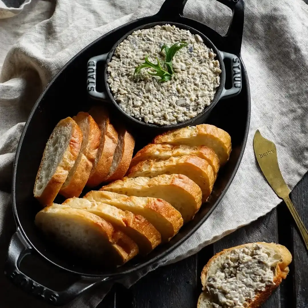 きのこは3〜4種類使うと味わい深く仕上がります。なるべく細かくすることで、なめらかな仕上がりになります。バゲットなどのパンと一緒にどうぞ。