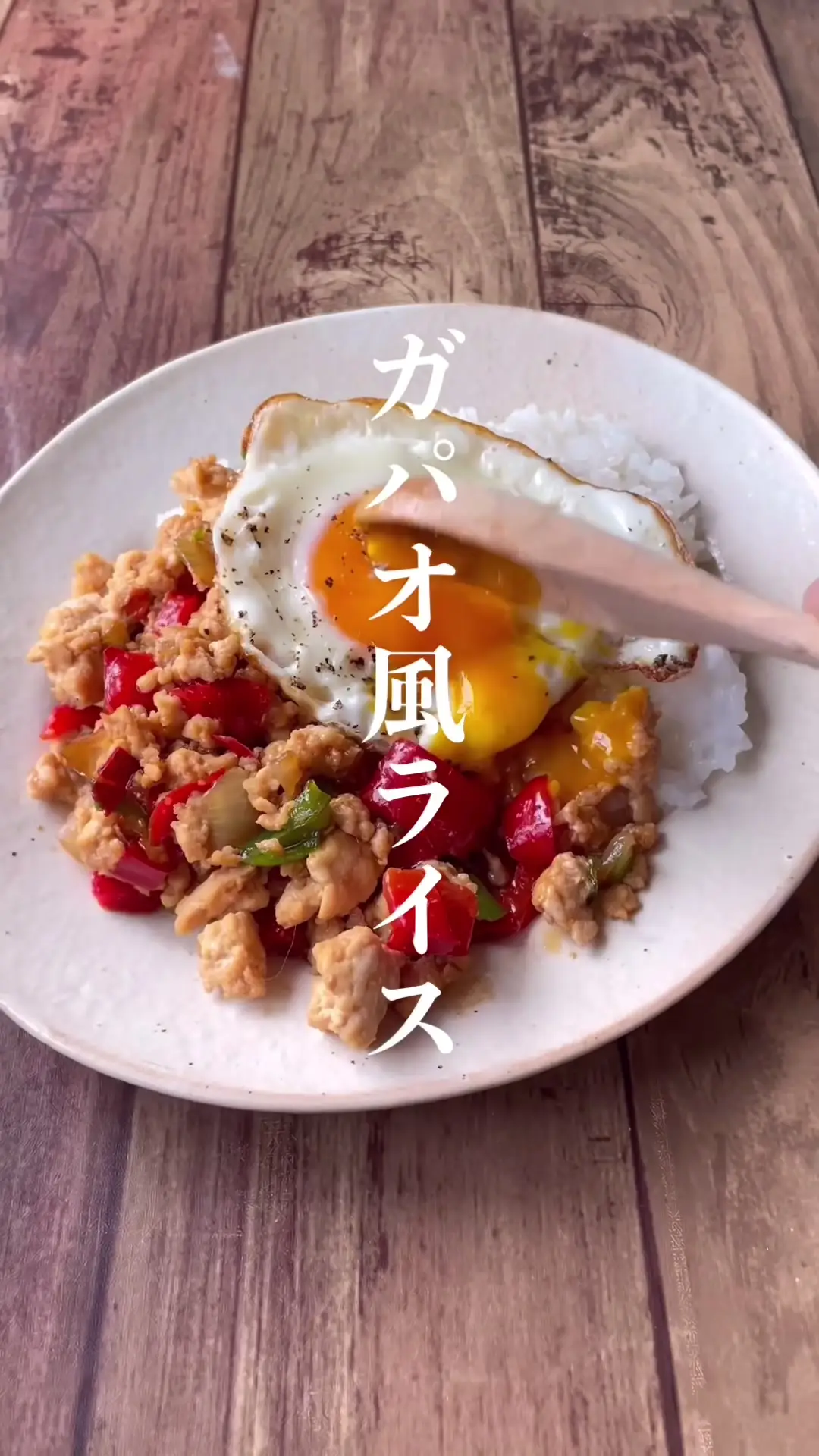 お好みで生のバジル(ホーリーバジルが最適ですが、スイートバジルでも代用可)を工程4の炒め煮の最後に加えると、より本格的なガパオの風味を楽しめます。辛いものがお好きな方は、赤唐辛子の量を増やしたり、仕上げにラー油をかけたりするのもおすすめです。ピーマンやパプリカの代わりに、いんげんやナスなどお好みの野菜を加えても美味しく作れます。ご飯はジャスミンライスを使うと、タイ料理の雰囲気がより一層高まります。